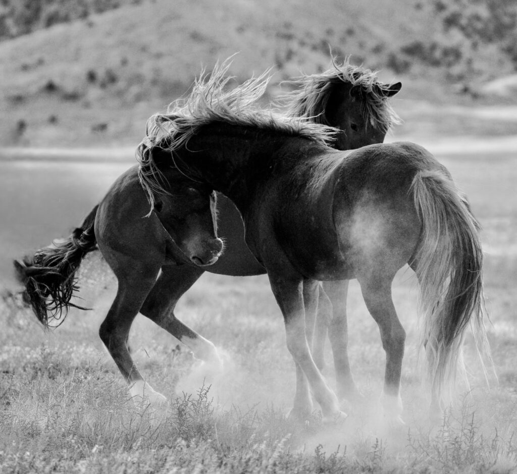 black & white dance of the horses
